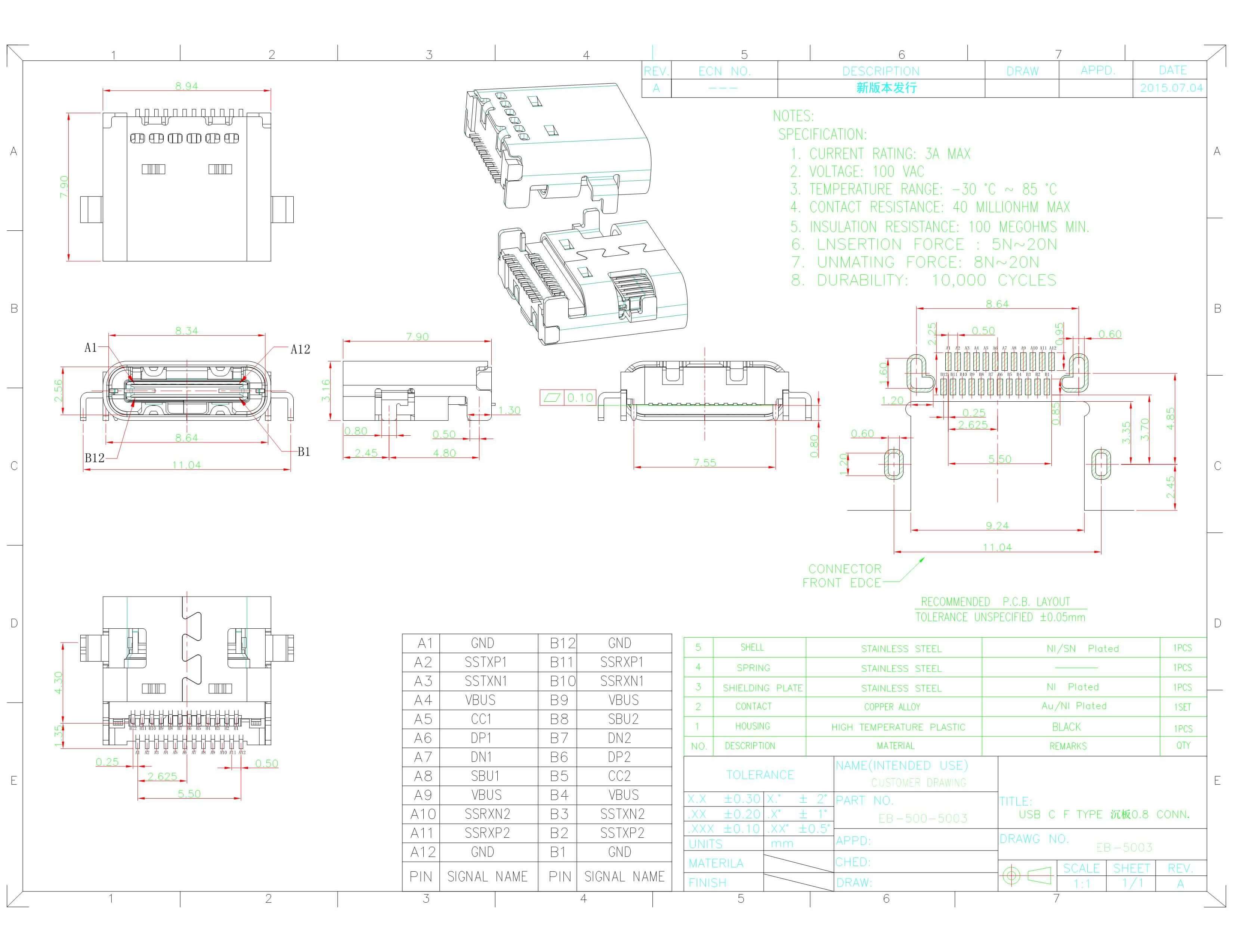 - USB3.0,Type C,母座,弯头,SMT,DIP,PCB板