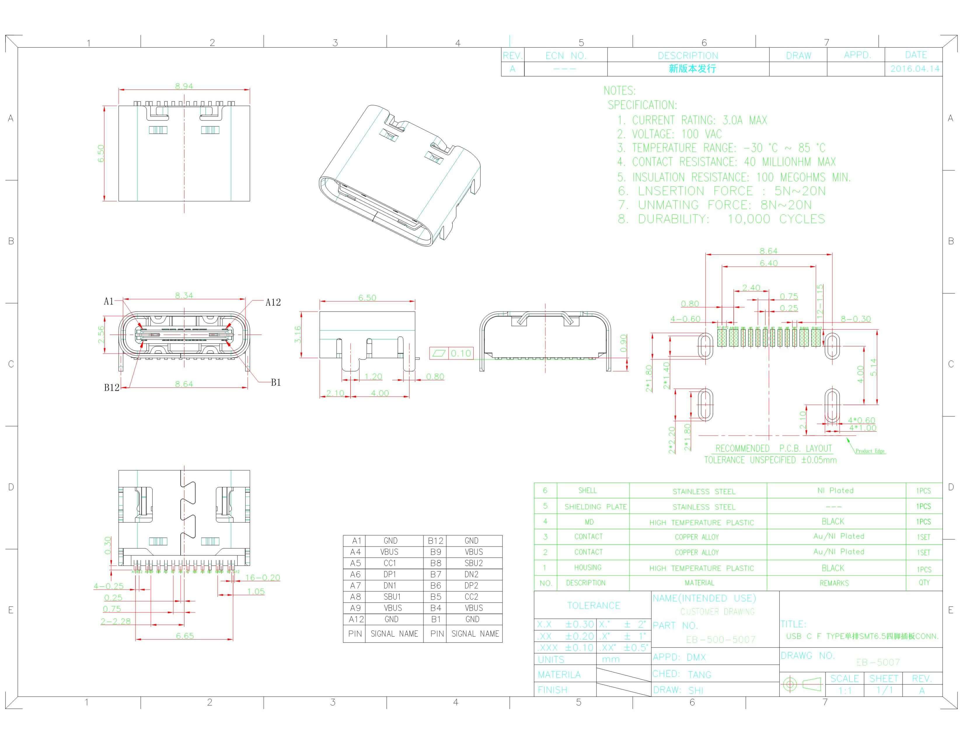 - USB3.0,Type C,母座,弯头,贴板,插板,接PCB板