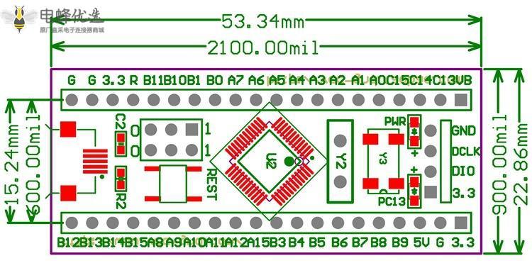 - 系统开发板模块, 单片机, STM32F103C8T6芯片, Mirco USB接口, 48针, PCB安装