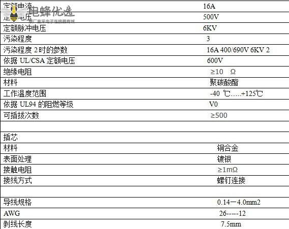 导线规格:0.14~4.0mm²AWG26-12