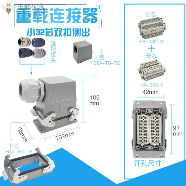6芯重载连接器双扣顶出侧出80A大电流矩形航空插头插座MF公母针