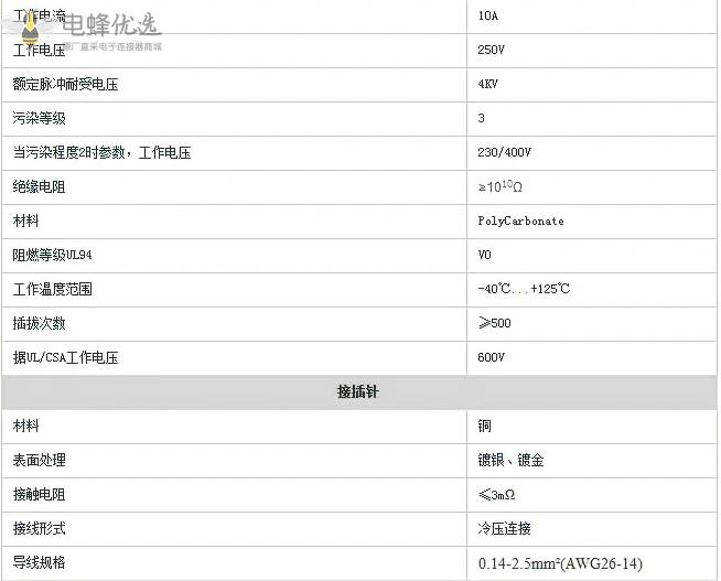导线规格:0.14-2.5m㎡(AWG26-14)