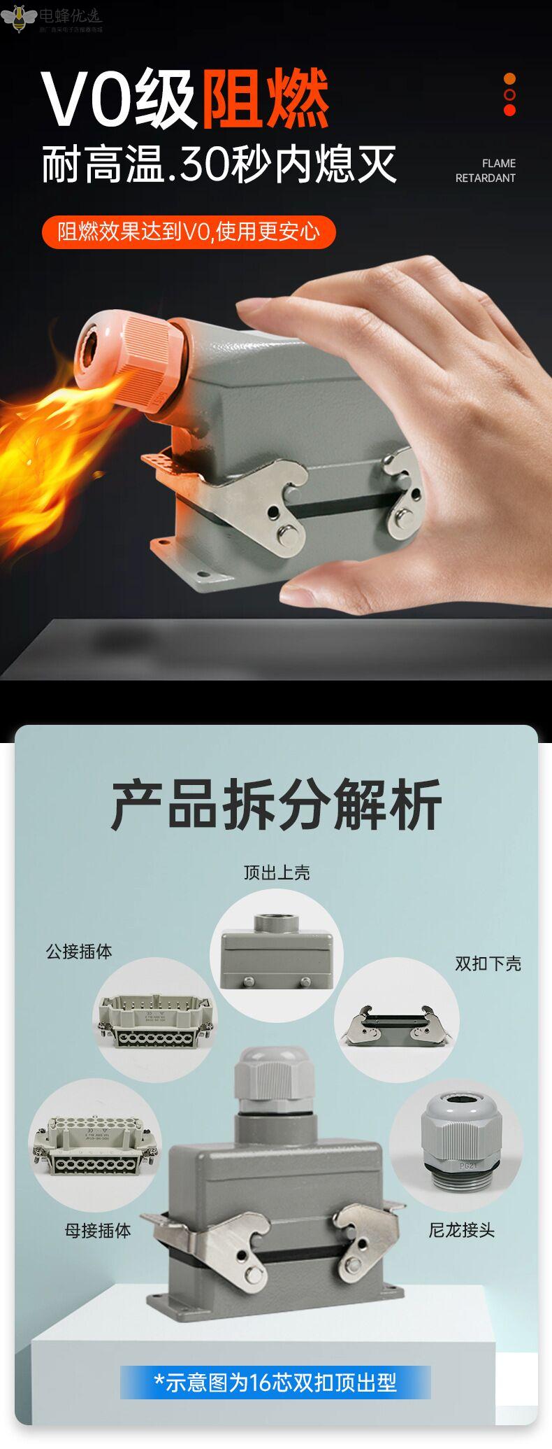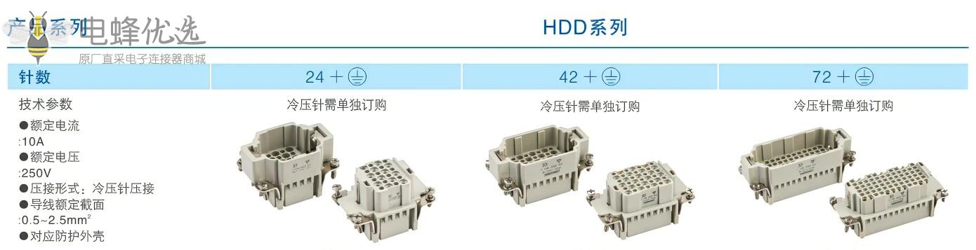 72芯HDD重载连接器厂家批发冷压连接公母对接矩形防水工业连接器