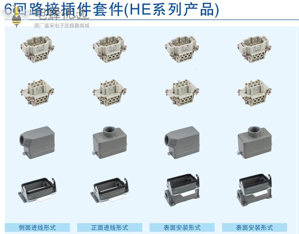 6芯重载连接器厂家直发铸铝外壳IP65防水镀银插针高结构上壳防水机械设备工业连接器