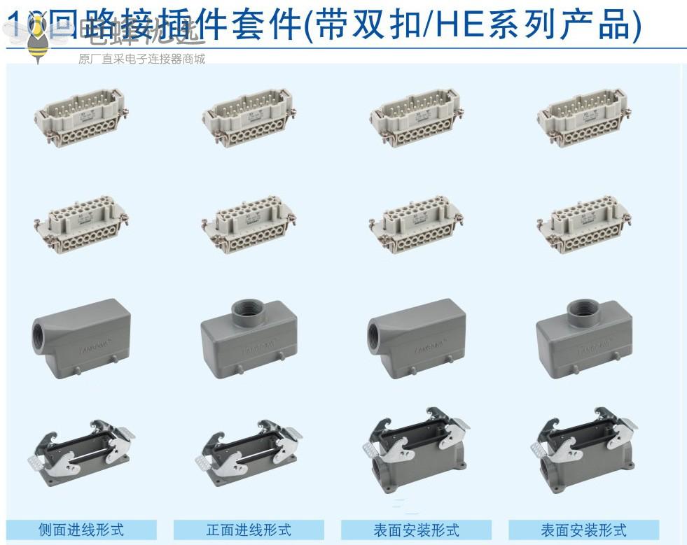 16芯重载连接器侧出4耳矩形厂家直销IP65防水10A工业连接器