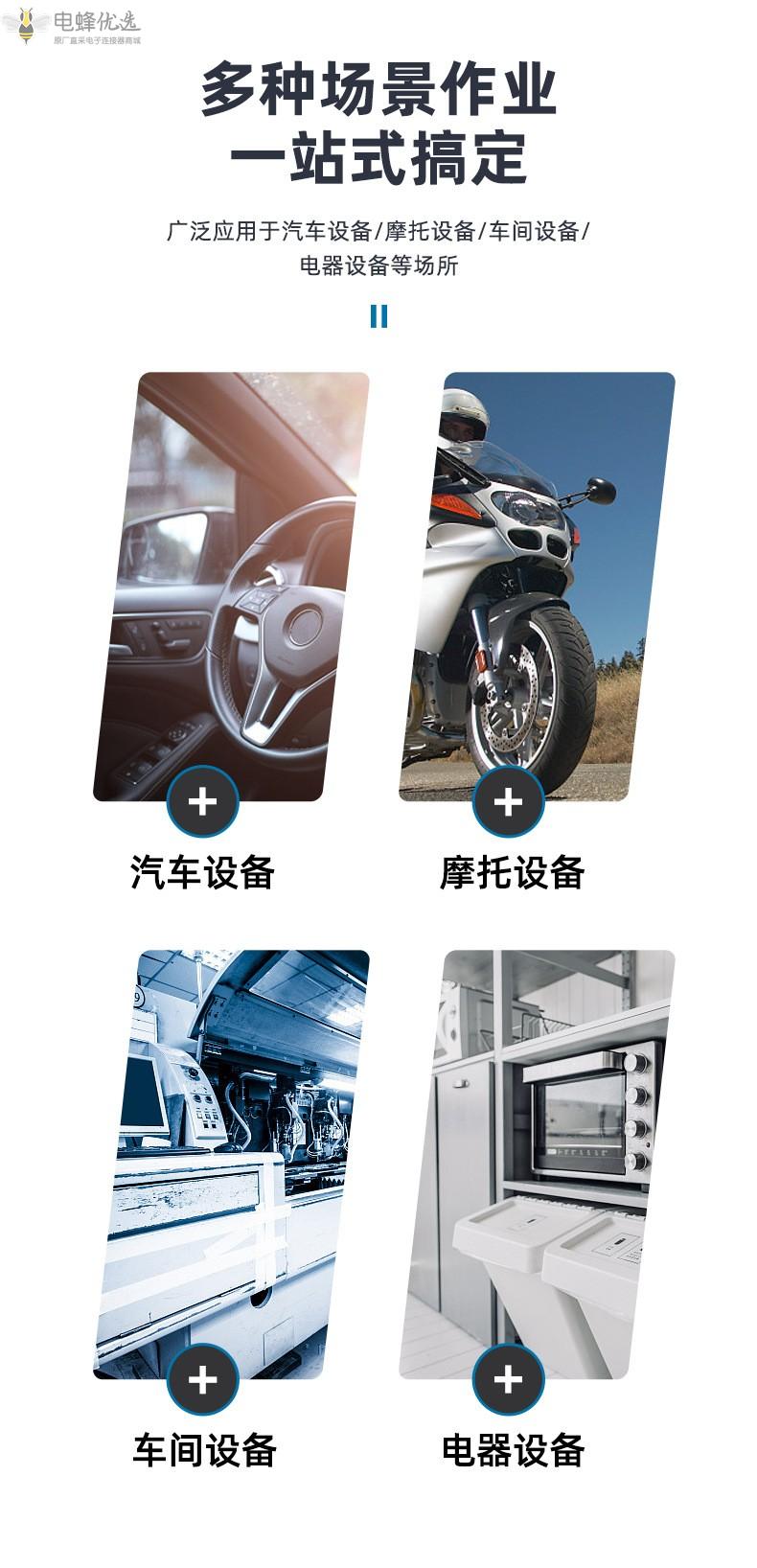 应用领域:家用电器、办公设备、汽车线束、重卡汽车