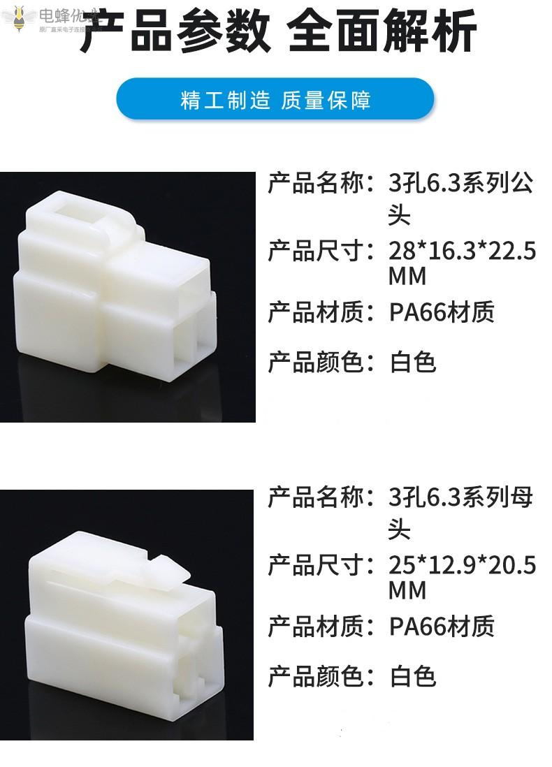 3孔汽车连接器PA66材质防水防尘公母接插件插片插簧
