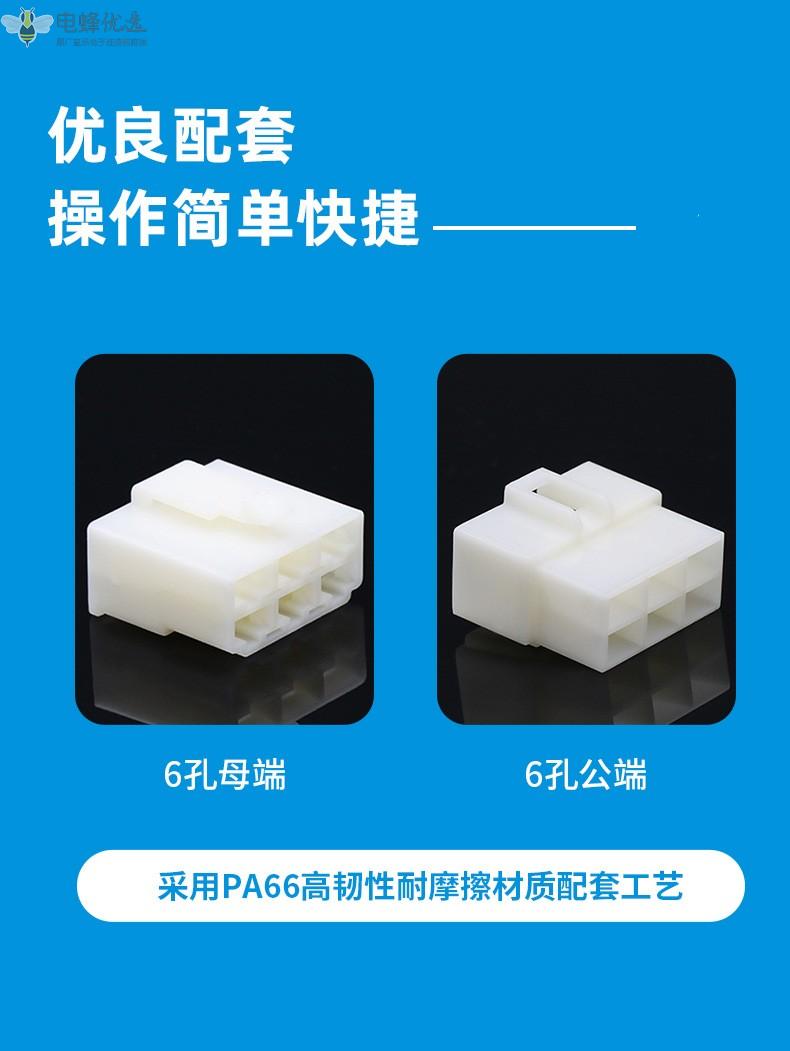 6.3系列6孔汽车连接器汽车接插件摩托电瓶7061-6.3-11公母阻燃对接插头