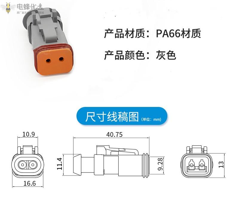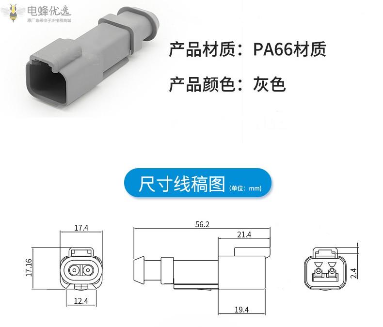 2芯2孔汽车防水连接器高盖对插线端公母插件灰色PA66材质