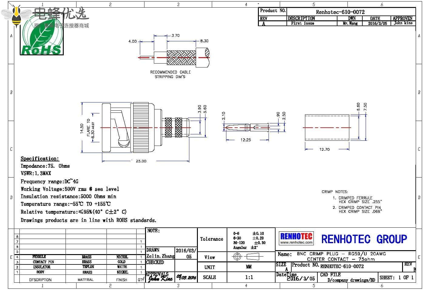 连接线,直式,公头,锌合金,50欧姆,RF射频同轴,BNC连接器,电缆,压接;