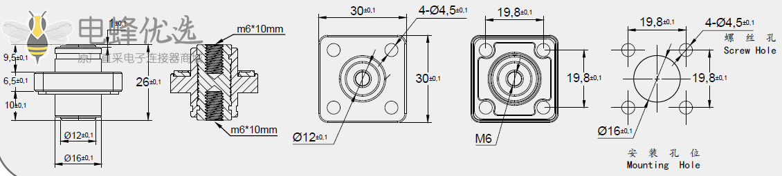 开孔尺寸:φ16-φ4*4(19.8*19.8mm)