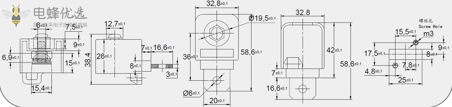 开孔尺寸:15.5*1 7.5mm/ M3
