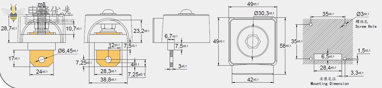 产品型号:DS-FM8-EB-48-3M(黄铜鼻)