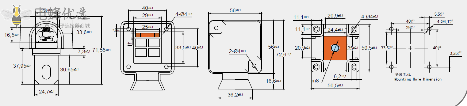 开孔尺寸:40*40±0.2mm/ M4
