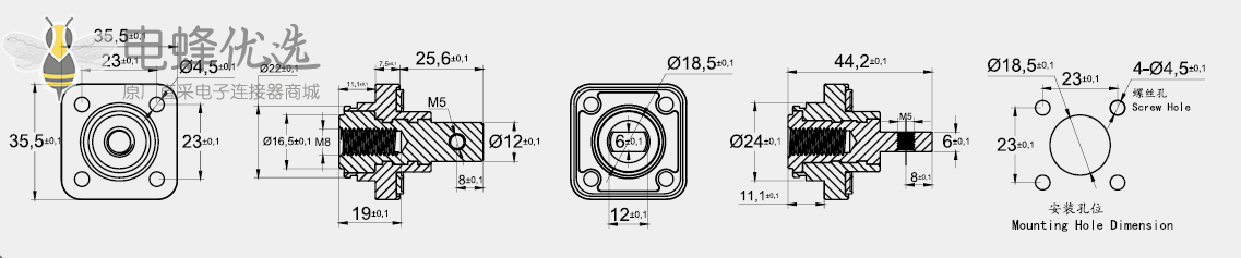 开孔尺寸:φ18,5-φ4,5*4 (23*23mm)