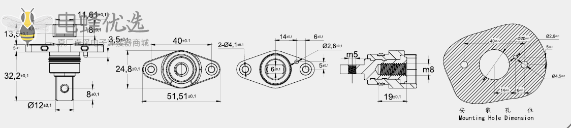 开孔尺寸:φ20-φ4,5*2 (40mm)