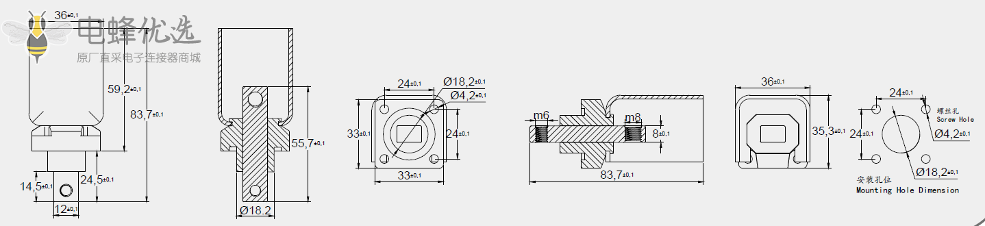 开孔尺寸:φ18,2--φ4,2*4(24*24mm)