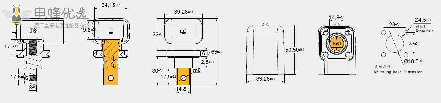 开孔尺寸:φ18,5-φ4,5*4 (23*23mm)