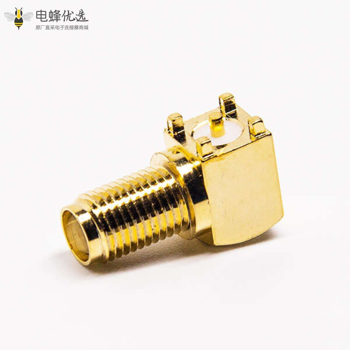 - SMA连接器,弯式,母头,穿孔,PCB板,镀金;