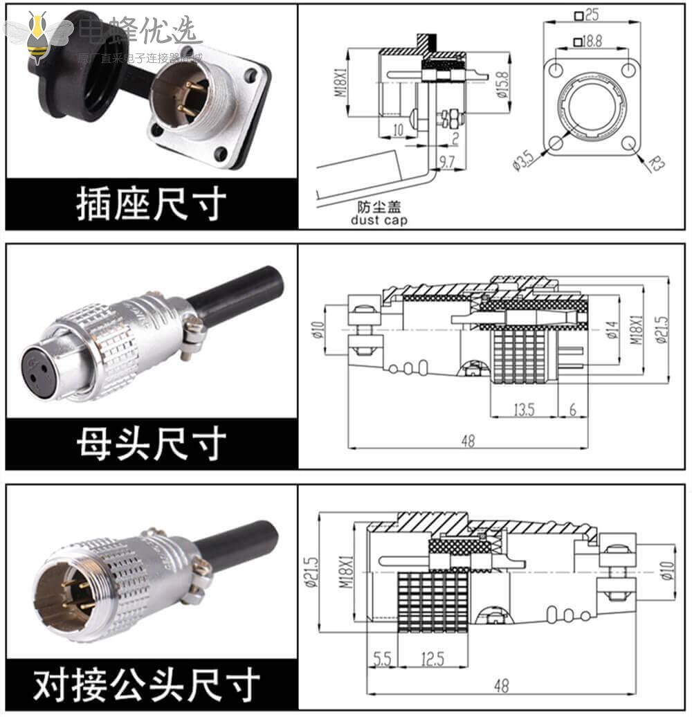 TP28系列航空连接器, 直式,焊线,母插头,公插座,4 孔法兰,5芯