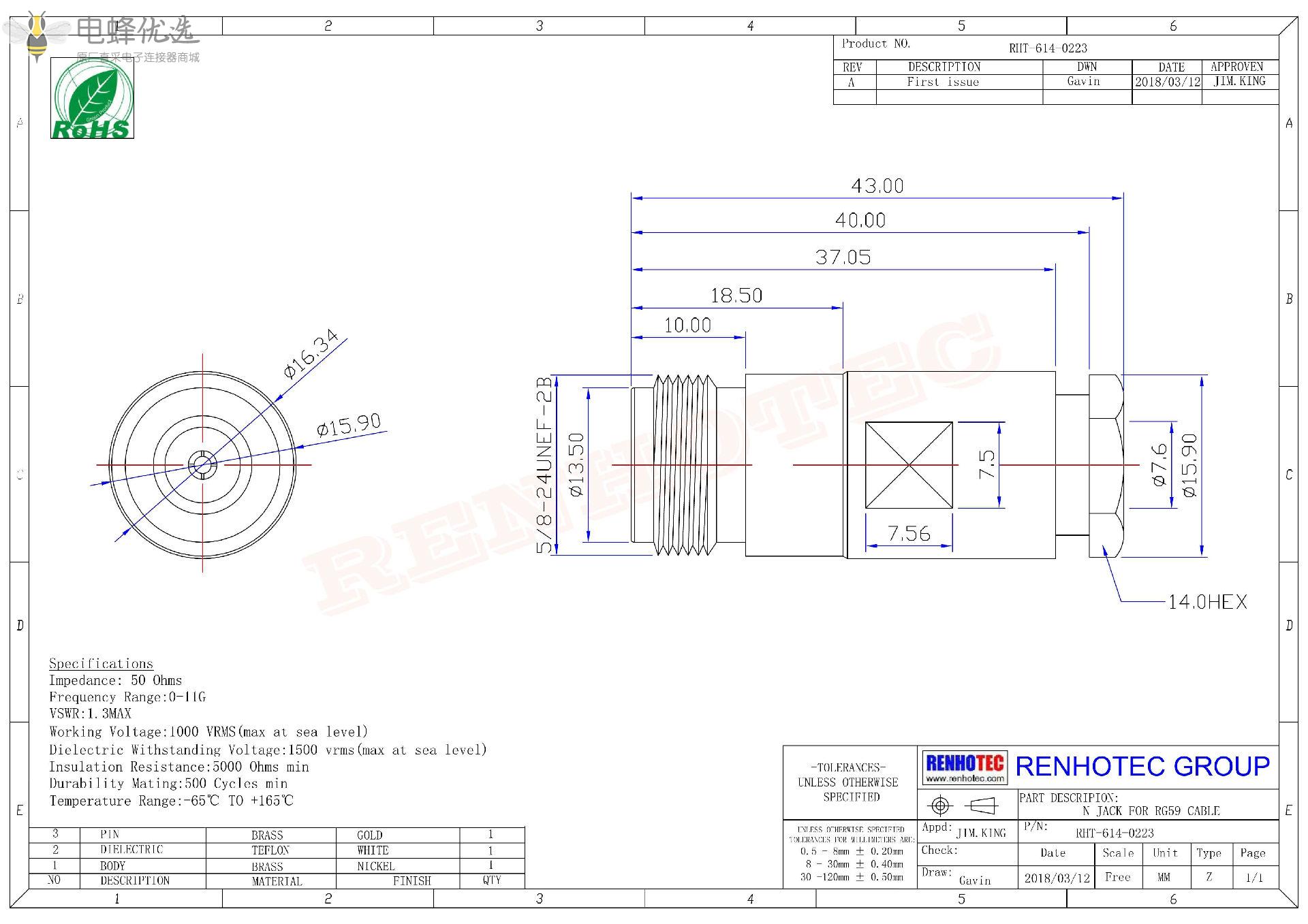 - 阻抗:50 ohm