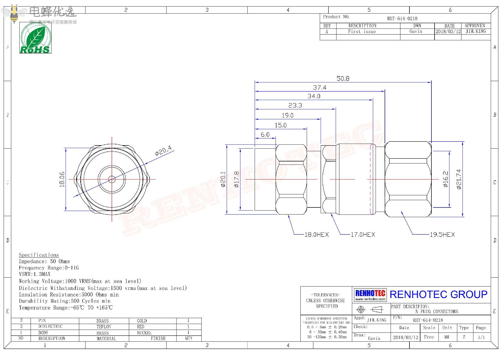 - 阻抗:50 ohm