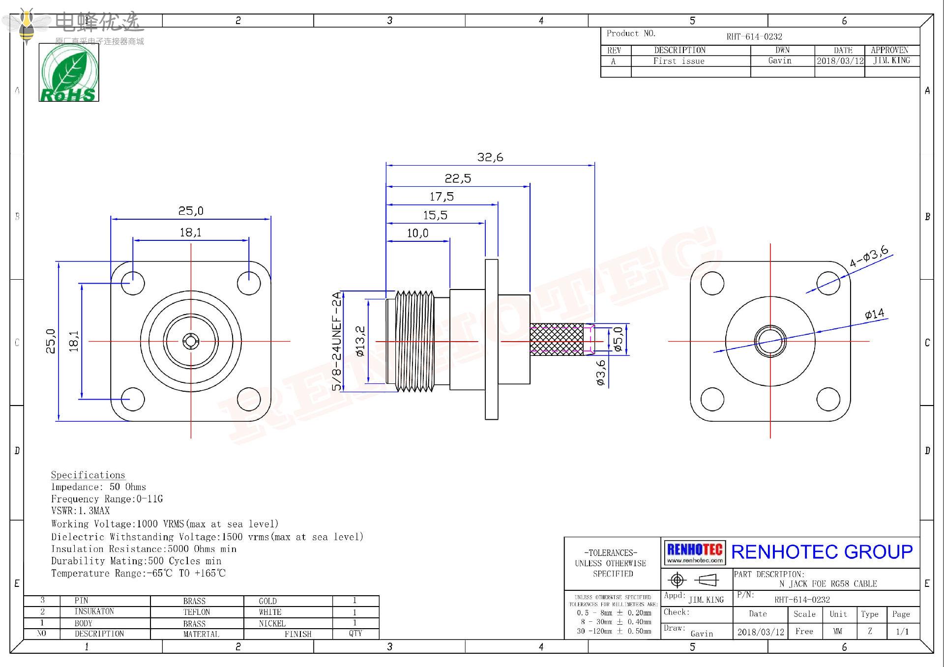 - 阻抗:50 ohm