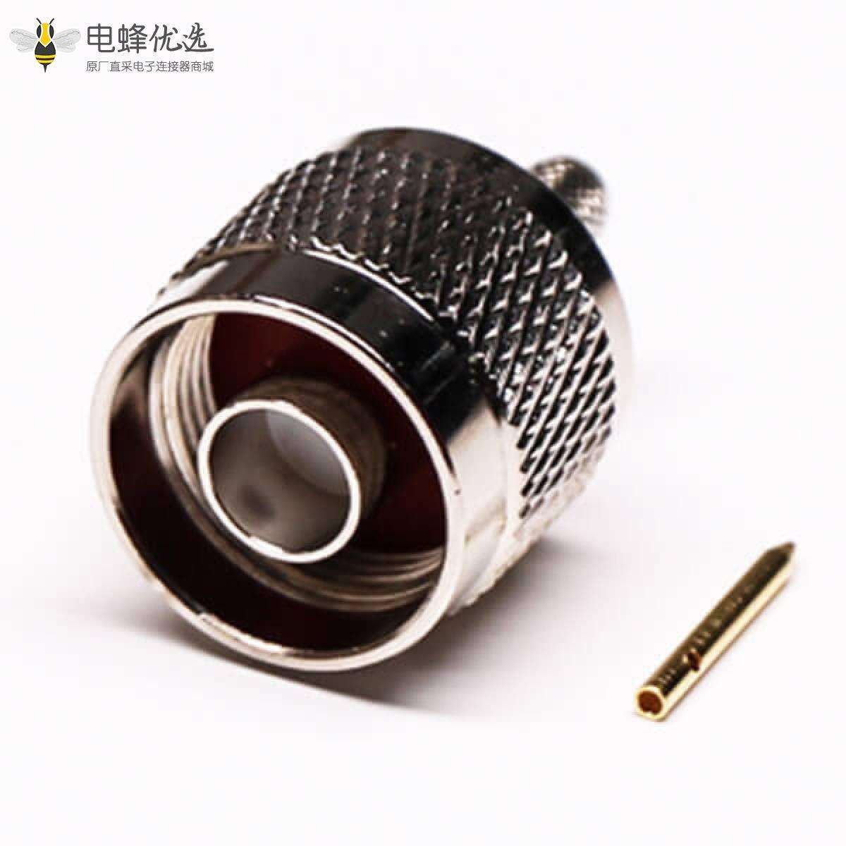 - N型连接器,直式,180度,公头,压接式,接同轴线缆;