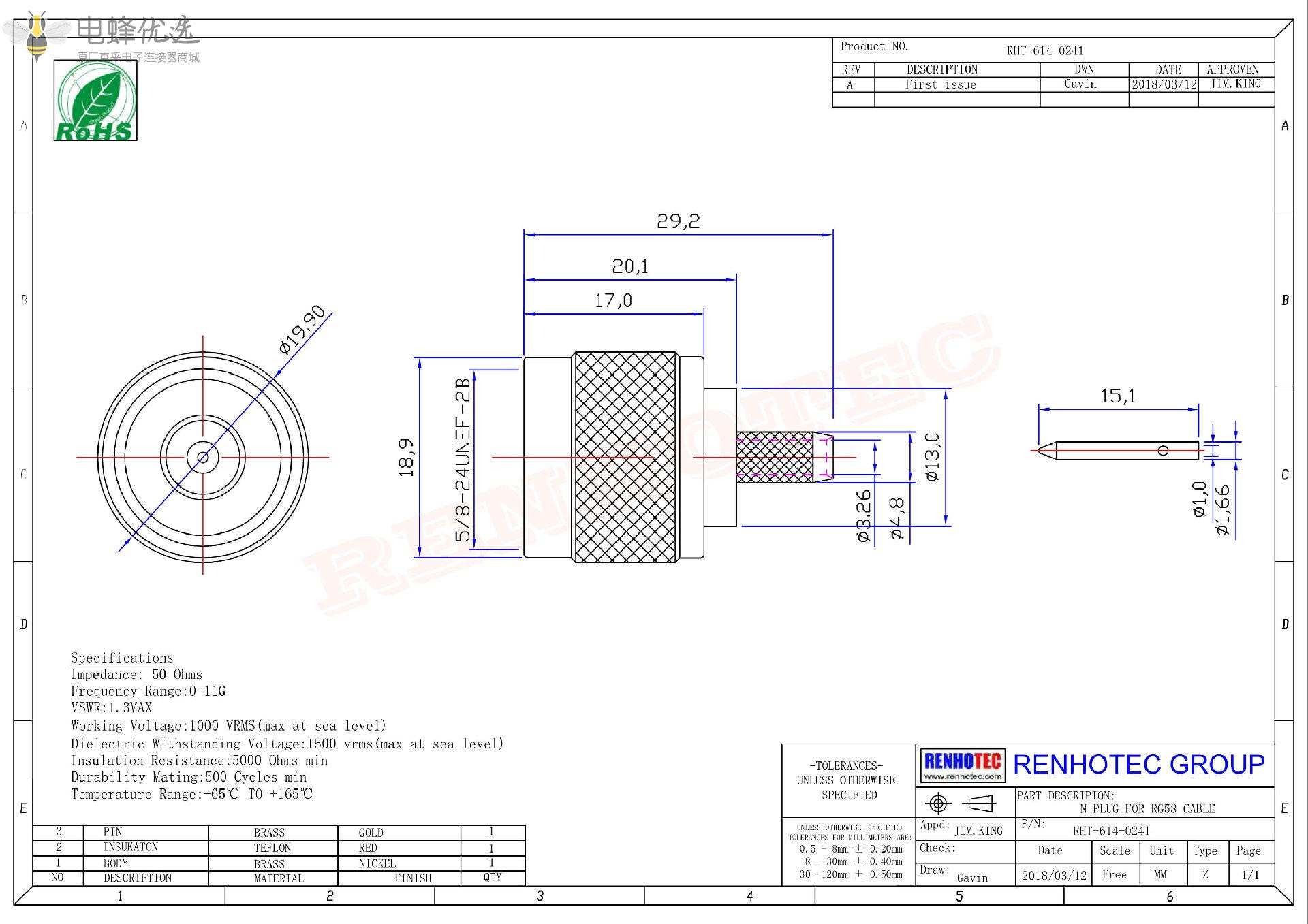 - 阻抗:50 ohm