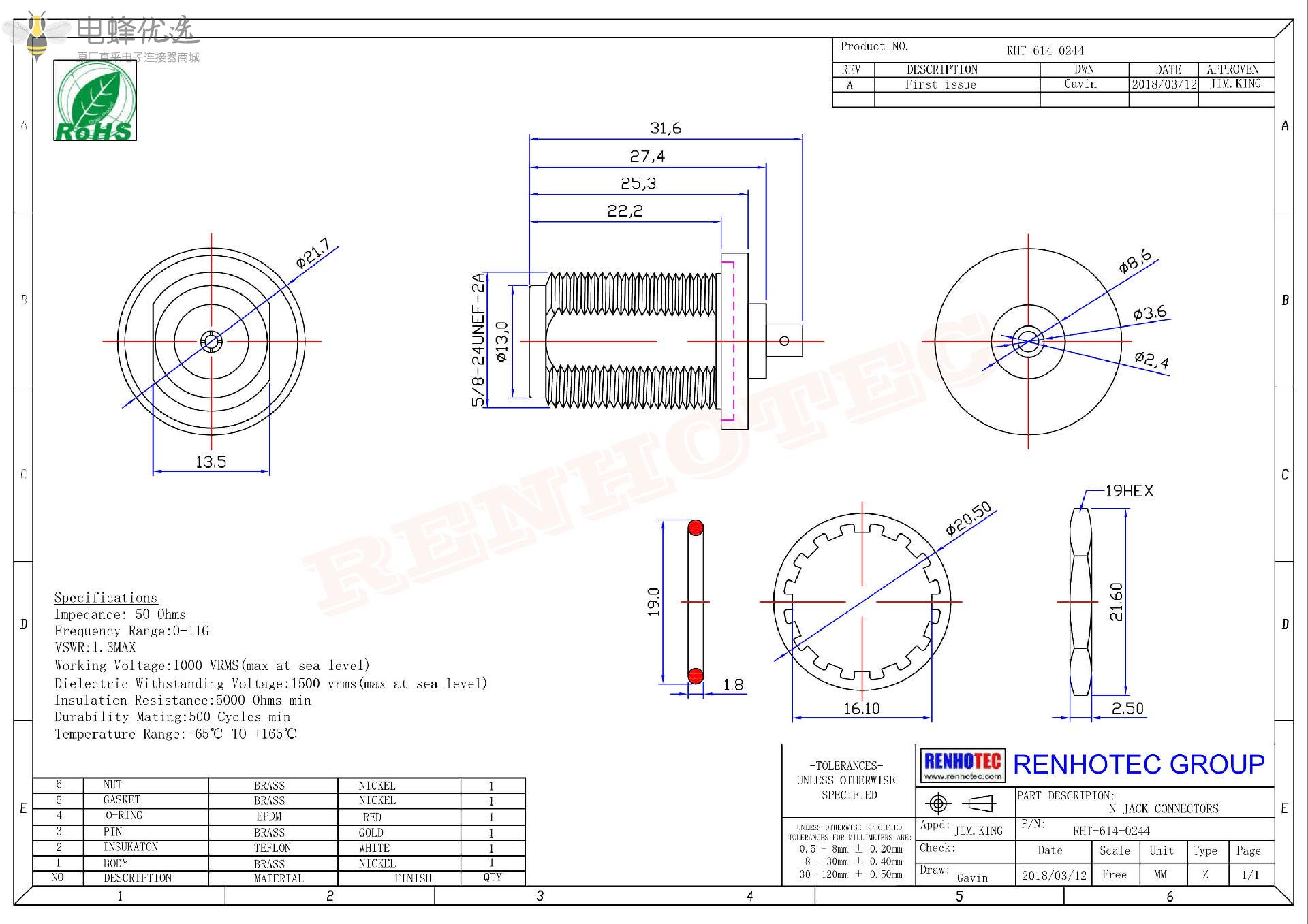- 阻抗:50 ohm