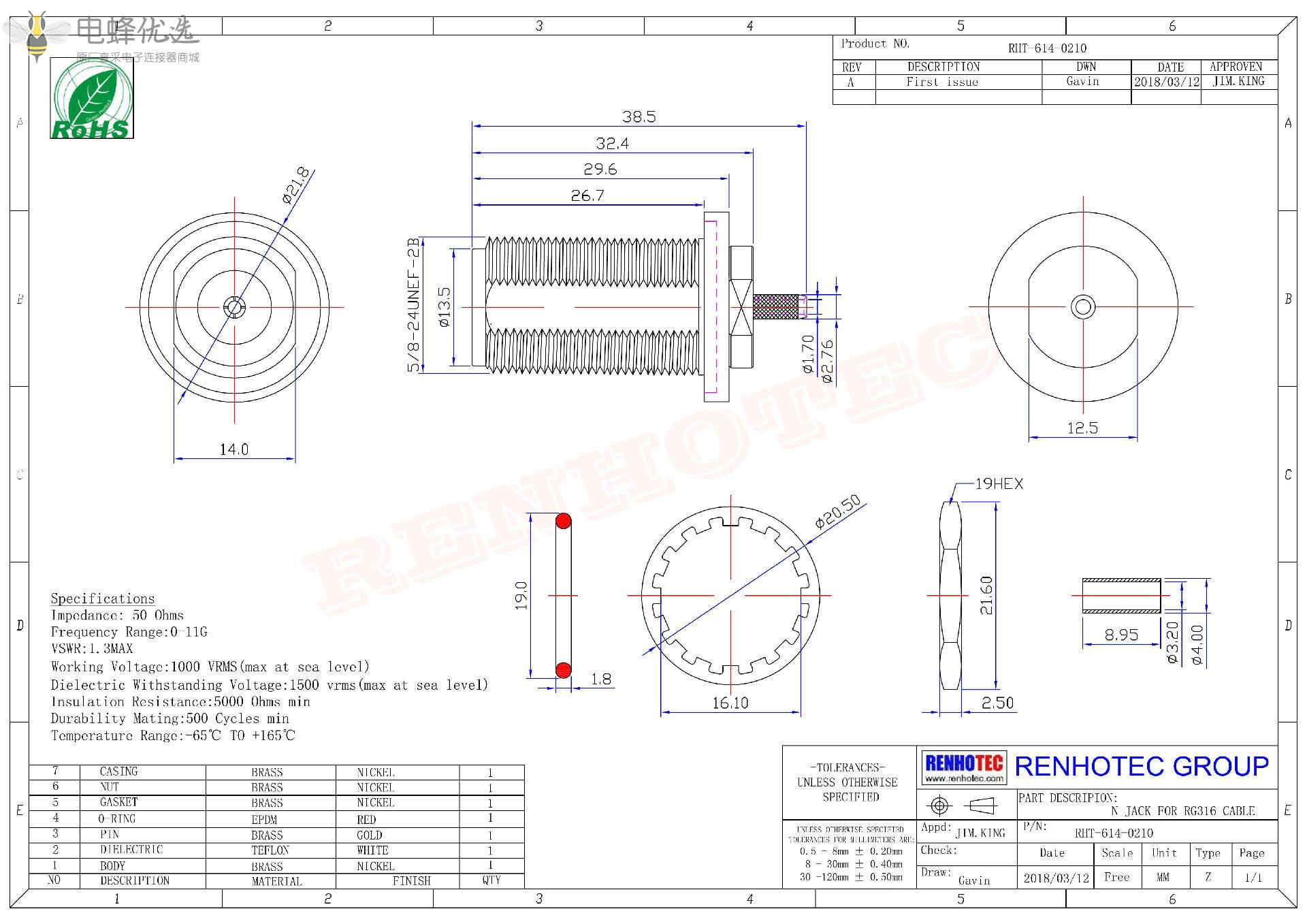 - 阻抗:50 ohm
