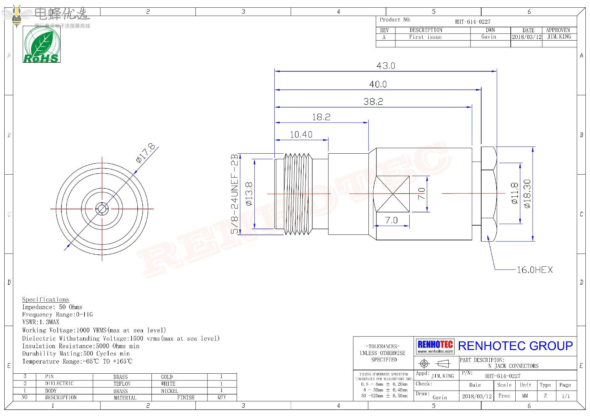 - 阻抗:50 ohm
