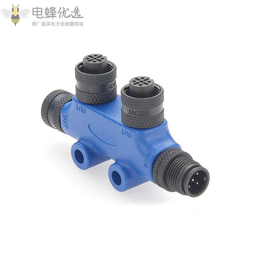 船用级产品,NMEA 2000 ,二通,多端口T形连接器,3个M12母5芯转5芯公