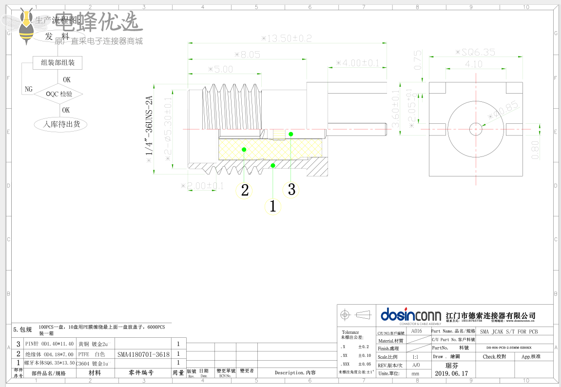 sma连接器,pcb板,边缘卡板,母头,50欧,直式;