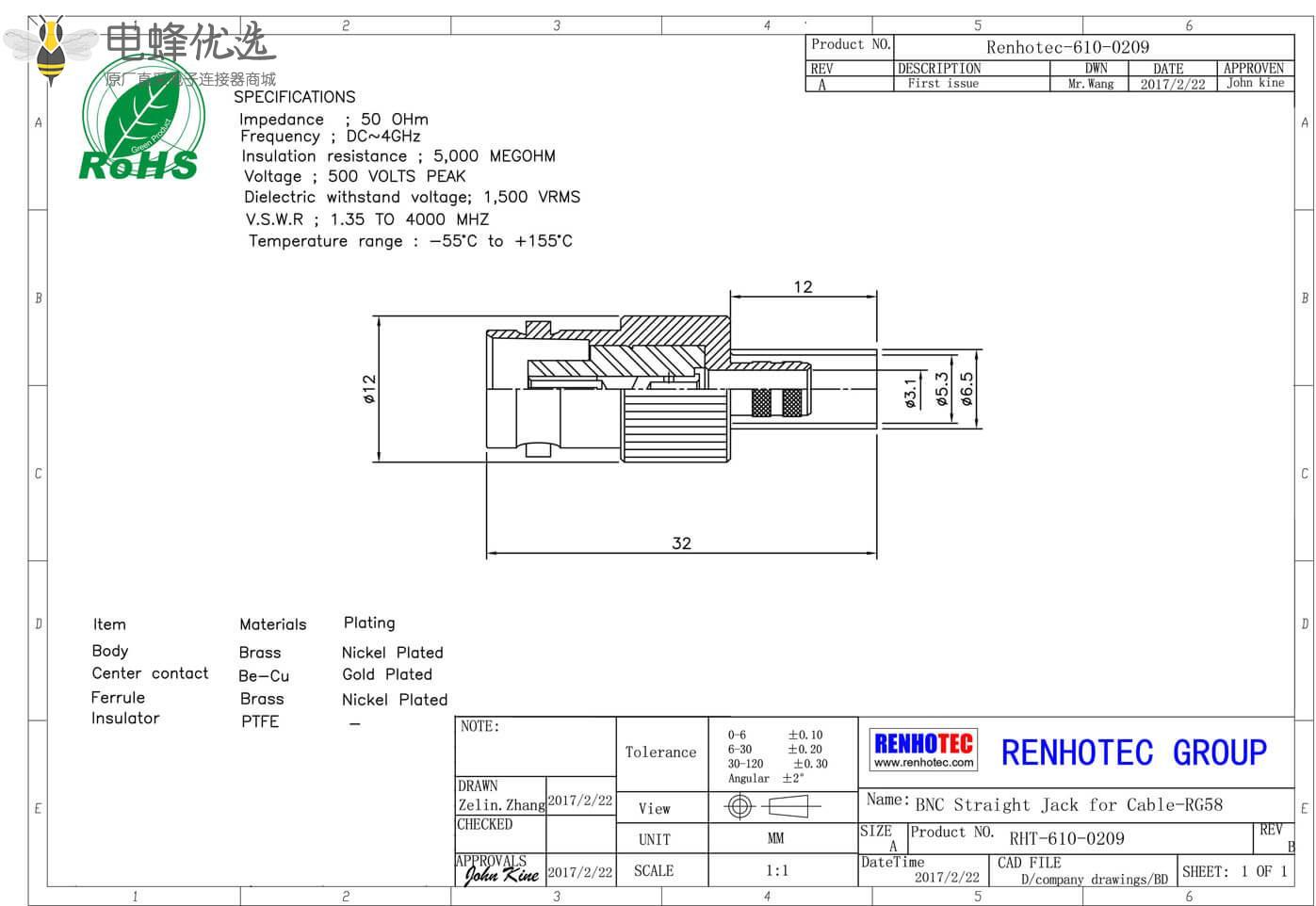 - 中心接触电阻:≦ 1.5 mΩ (Milliohms max.)