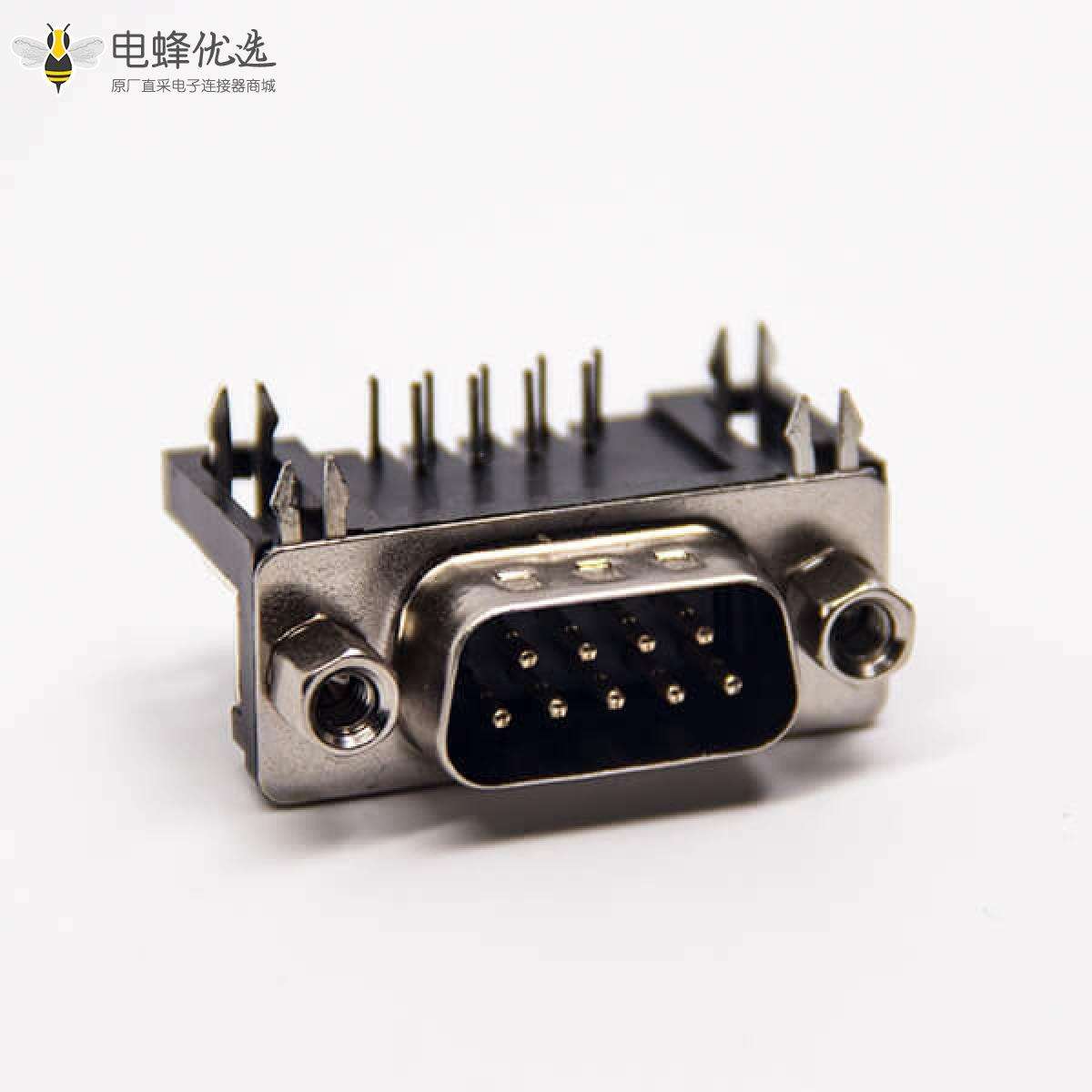 - D-sub,标准型,弯式,公头,铆锁,穿孔,PCB板,9针,鱼叉脚;