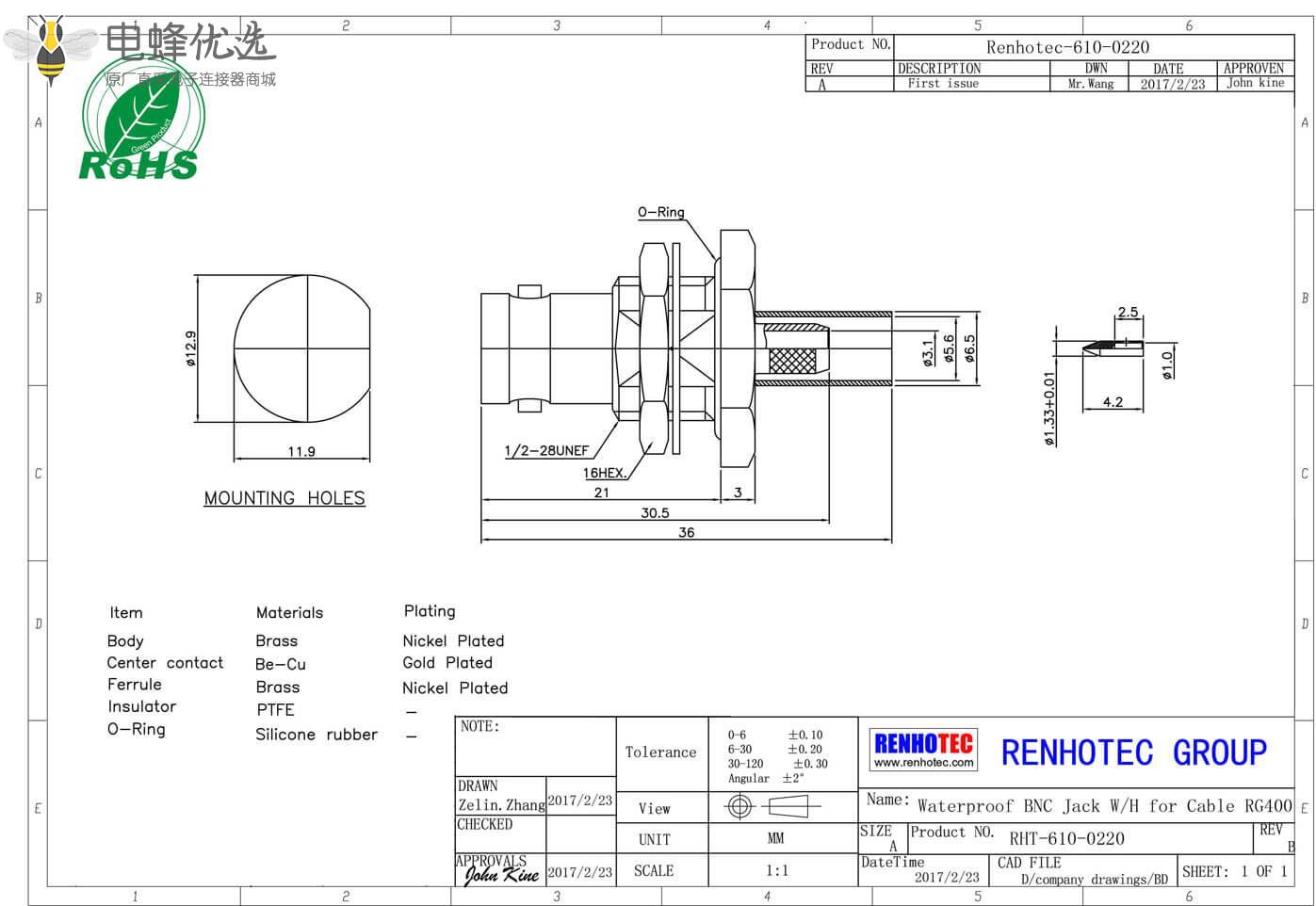 - 中心接触电阻:≦ 1.5 mΩ (Milliohms max.)