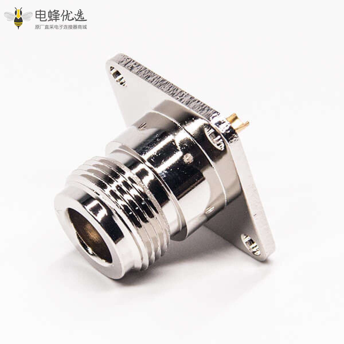 - N型连接器,直式,母头,4孔法兰,焊接式,面板安装;