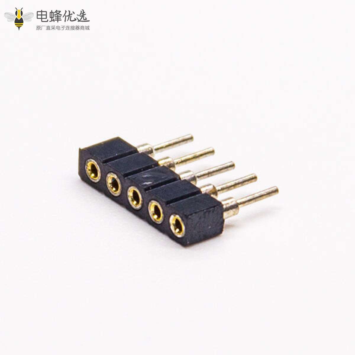 - 排母连接器,母头,直式,180度,5Pin,2.0mm,DIP,单排,单塑,圆孔;