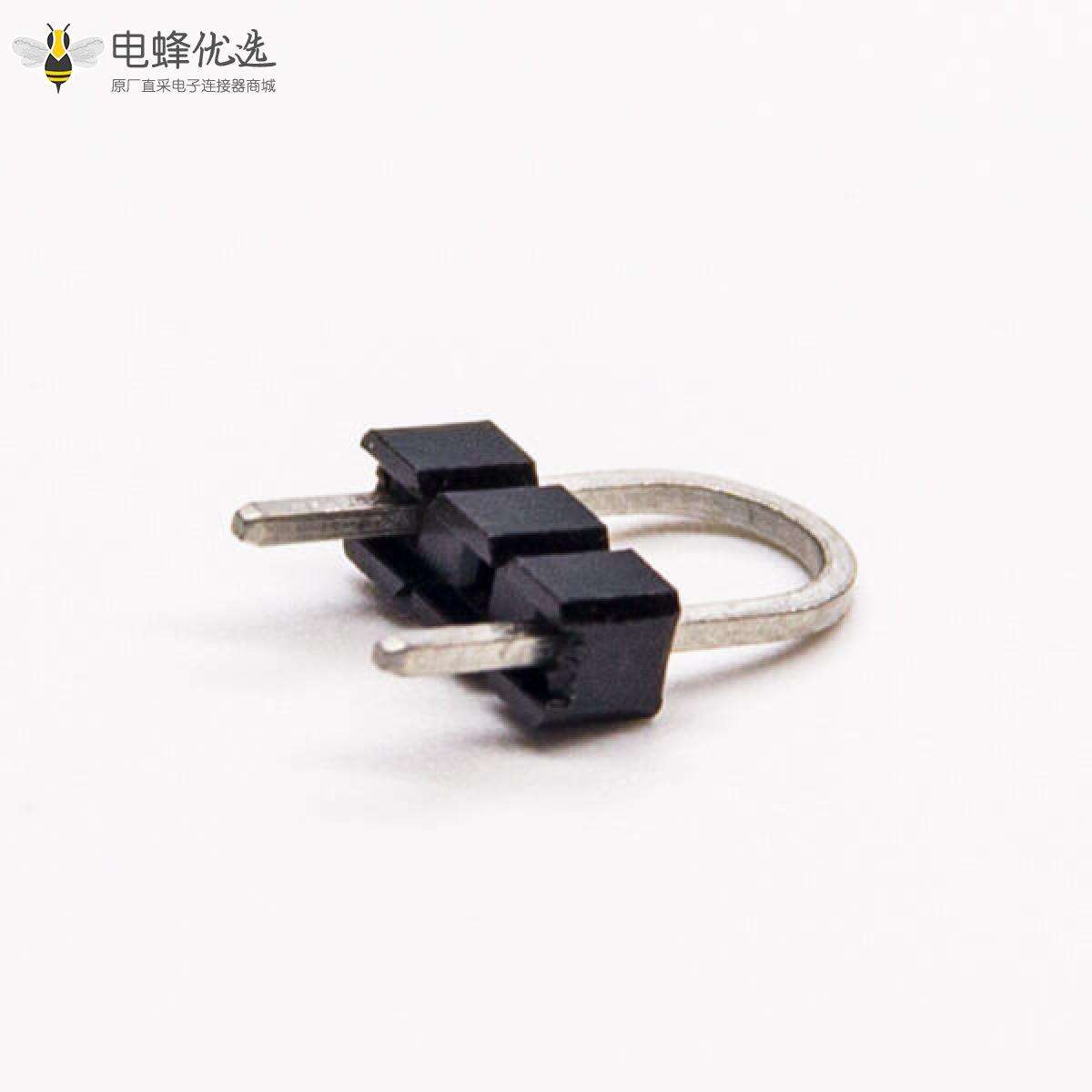 - 排针连接器,公头,直式,180度,2Pin,2.54mm,DIP,单排,单塑,U型针;