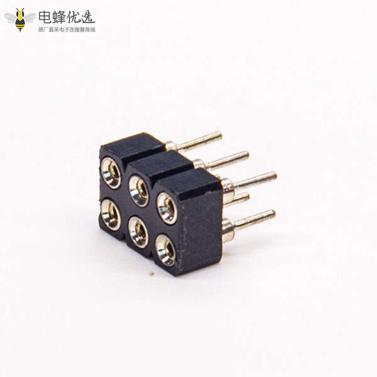 - 排母连接器,母头,圆孔,直式,180度,6pin,双排,针长7.43mm,DIP,间距2.54mm;