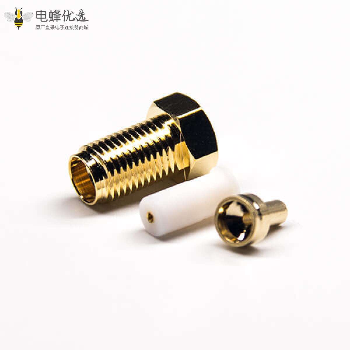 - SMA连接器,直式,180度,母头,白色胶芯,镀金,压接,焊接,同轴线缆;