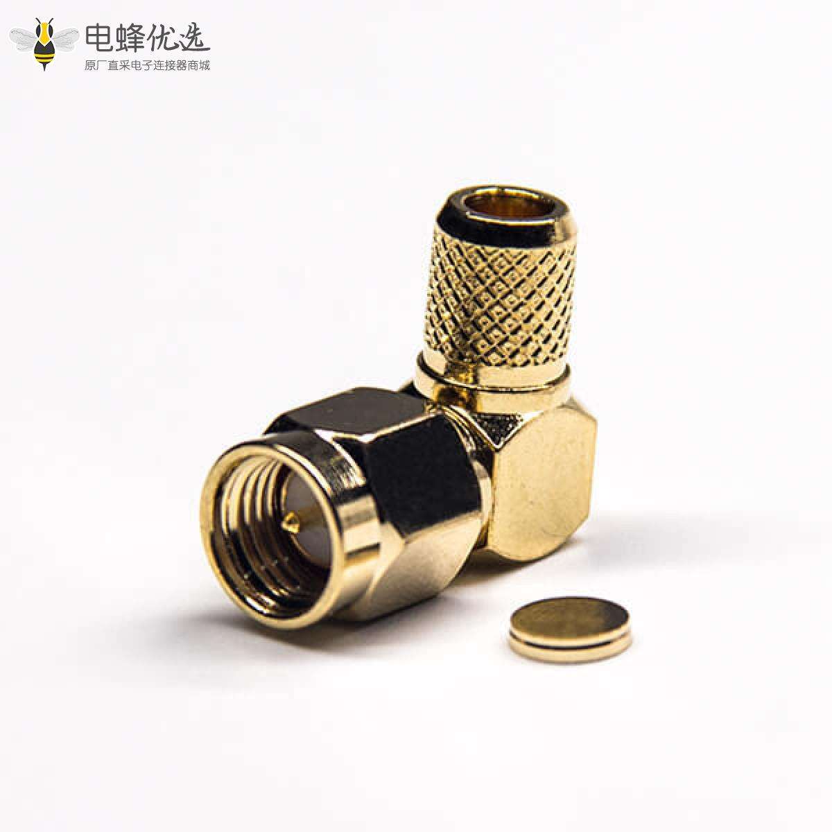 - SMA连接器,弯式,90度,公头,插板式,PCB板,镀金,压接,同轴线缆,RG6;