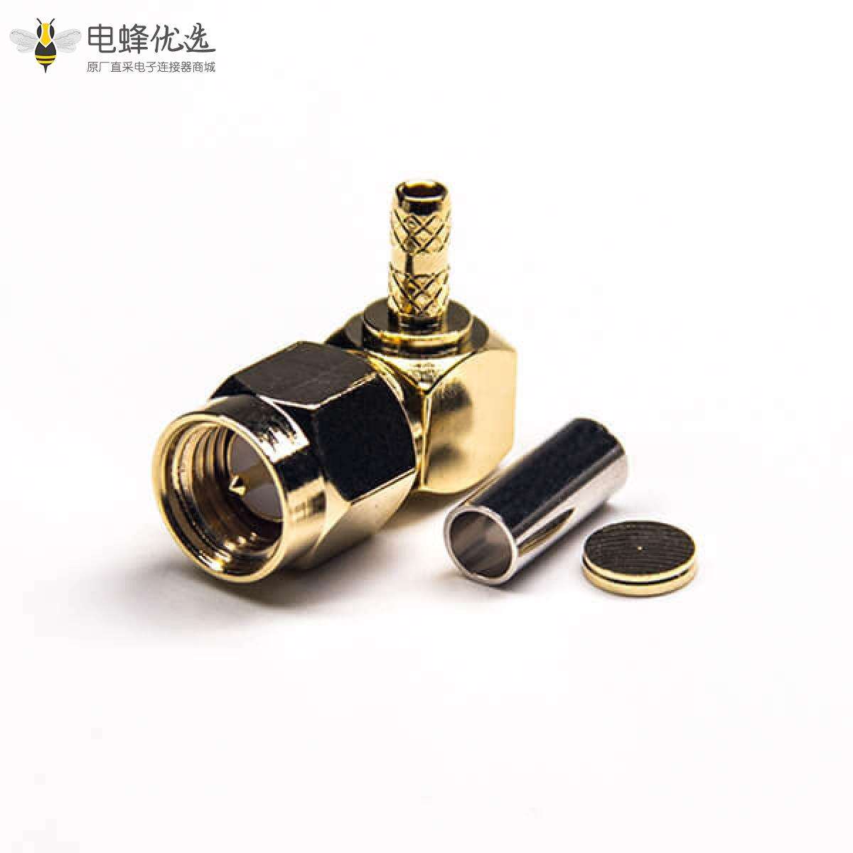- SMA连接器,弯式,90度,公头,插板式,PCB板,镀金,压接,同轴线缆,RG316;