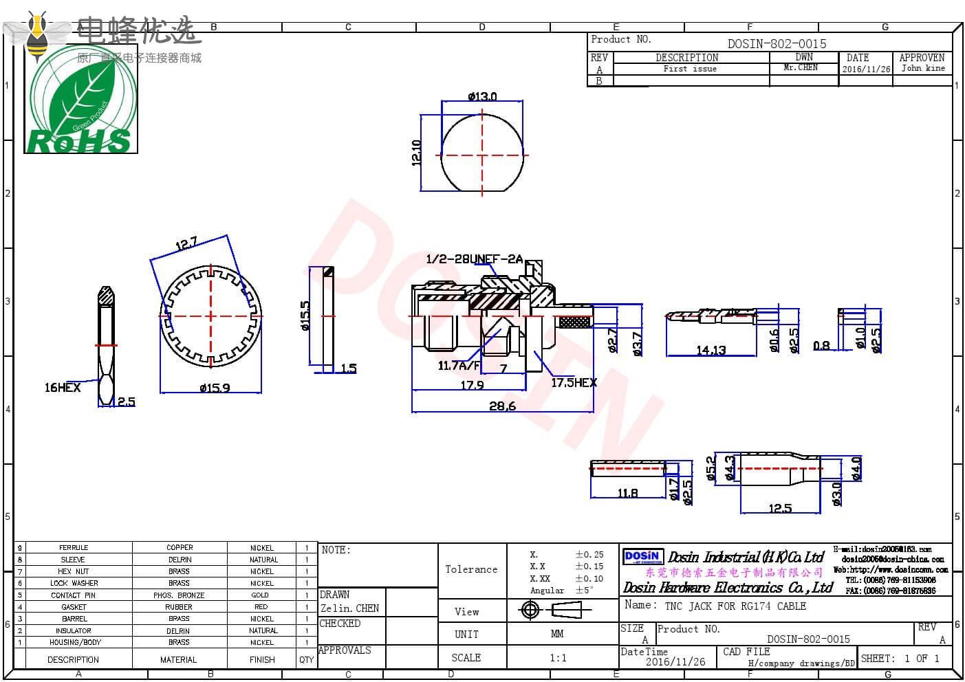 - 高质量原厂出货,30天无忧退换货,产品依照 MIL-C-39012国际标准生产;