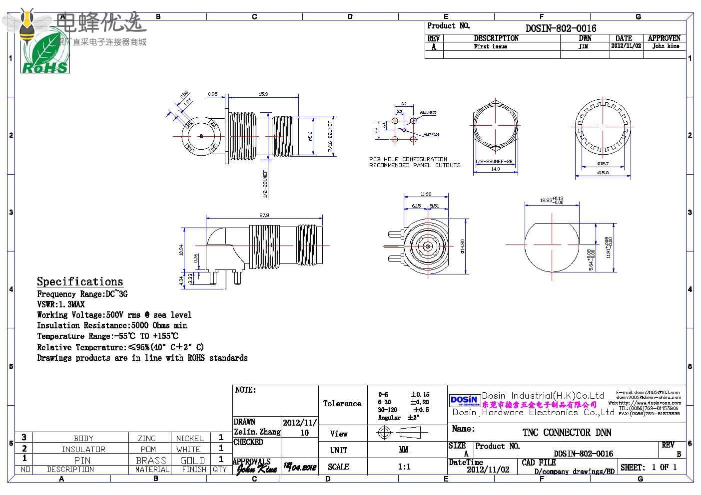 - PCB板,tnc连接器,弯式,穿墙,母头;