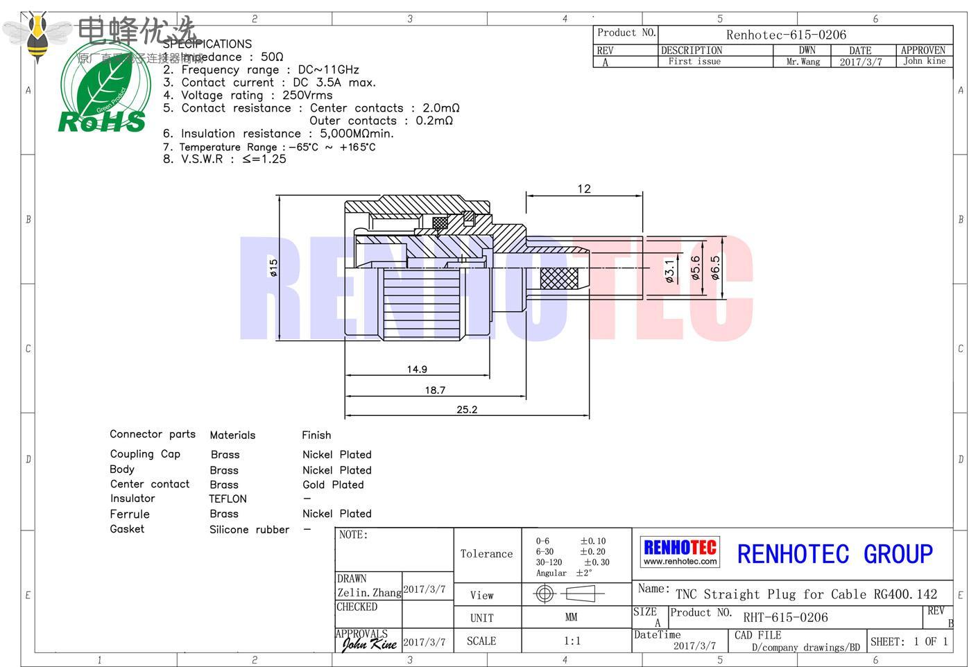 - 高质量原厂出货,30天无忧退换货,产品依照 MIL-C-39012国际标准生产;