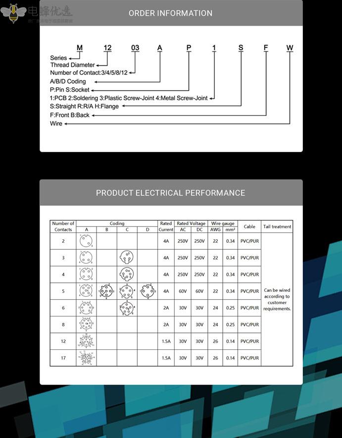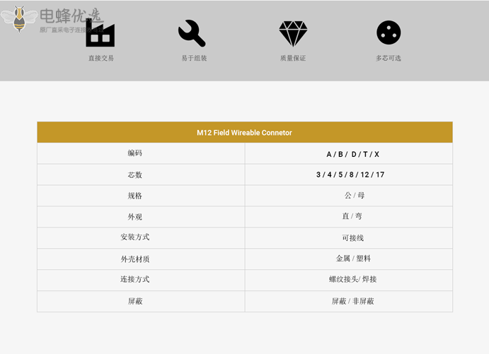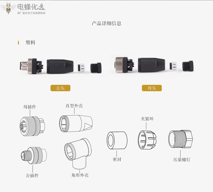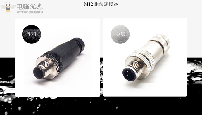M12,A 编码,现场组装式,4芯,公,直的,螺丝锁线,不带屏蔽;