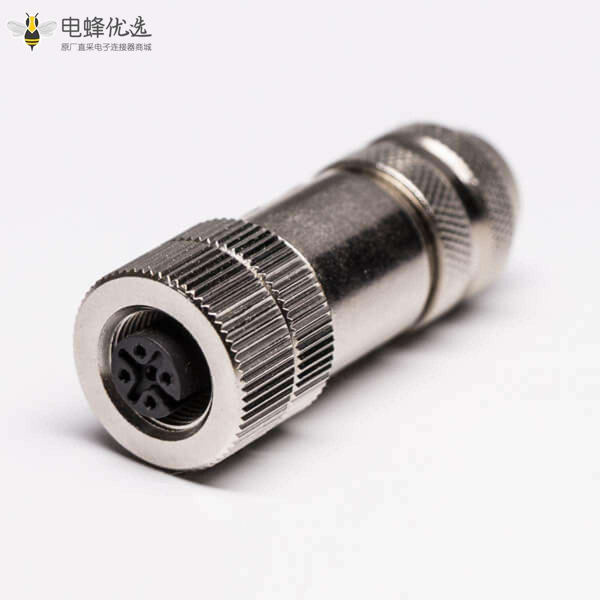 M12,A 编码,现场组装式,4芯,母,直的,螺丝锁线,带屏蔽;