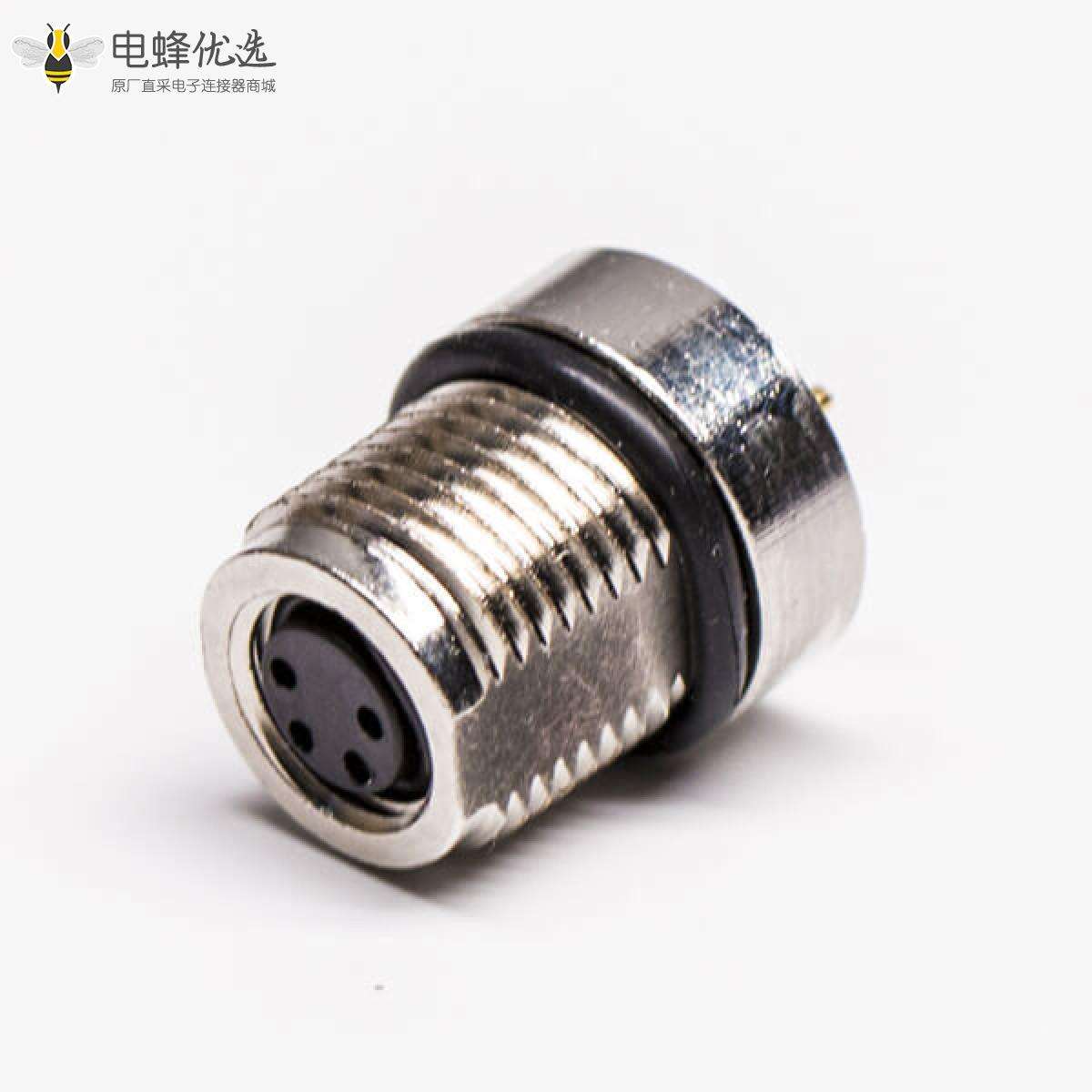 M8,4芯,A编码,板端插座,母,前锁板,直的,插板,不带屏蔽 ;